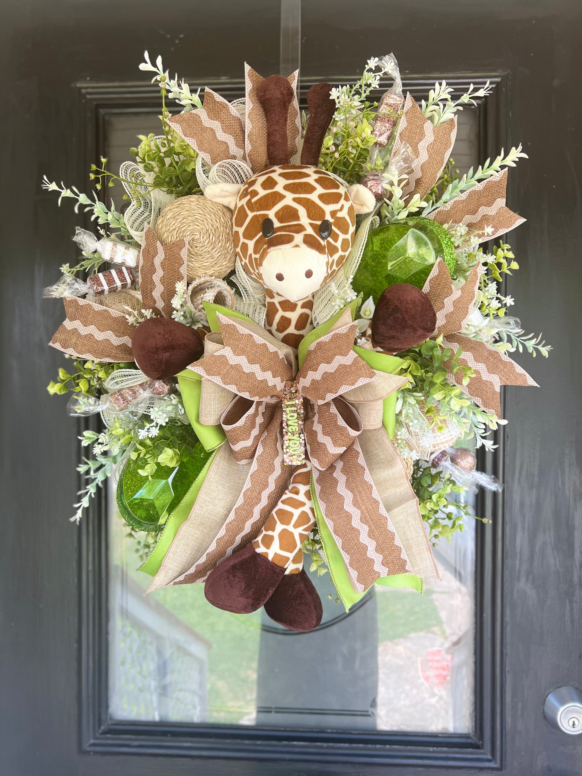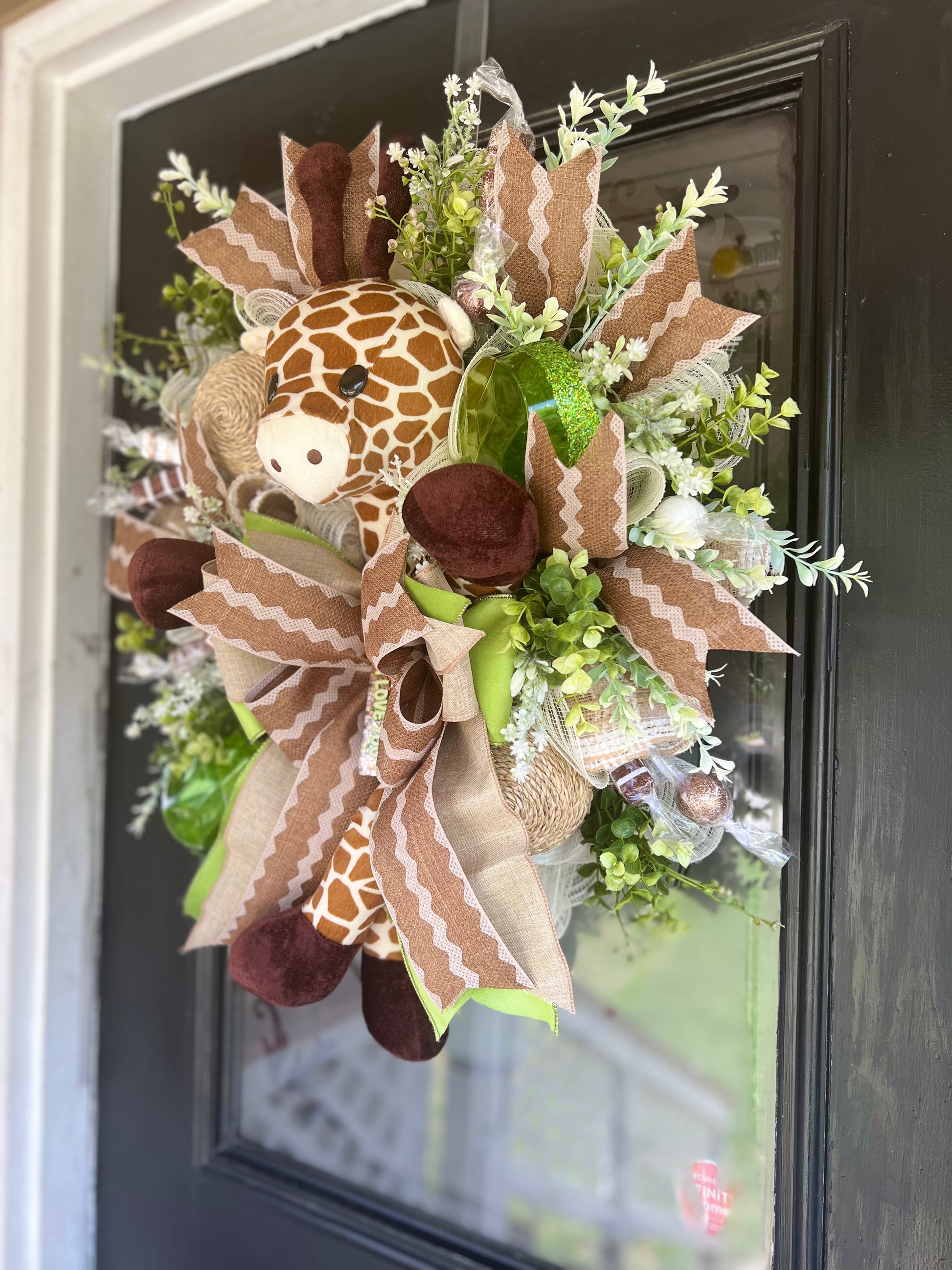 Meet Mr. Giraffe, your new favorite sparkly friend! This charming fellow is decked out in dazzling gems that catch the light with every glance. Sprinkled with playful touches of greenery and topped with bouncy ribbons and perky bows, he's ready to bring a splash of fun and whimsy to your home.