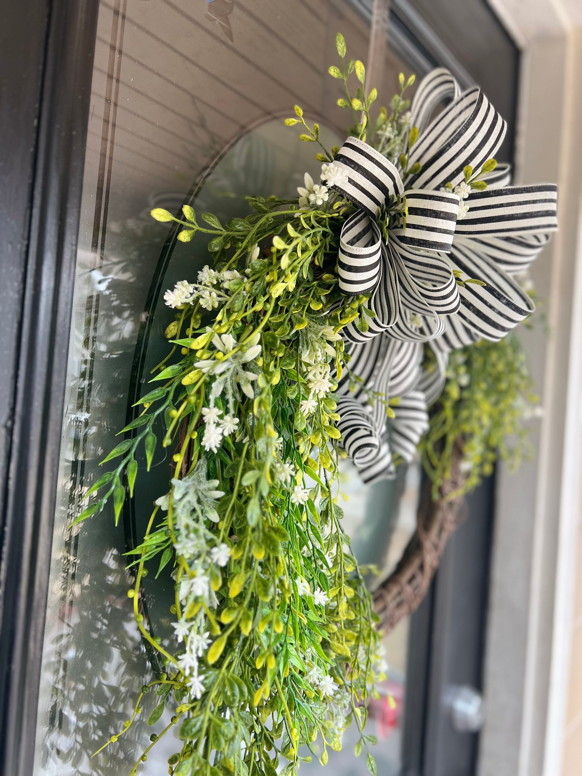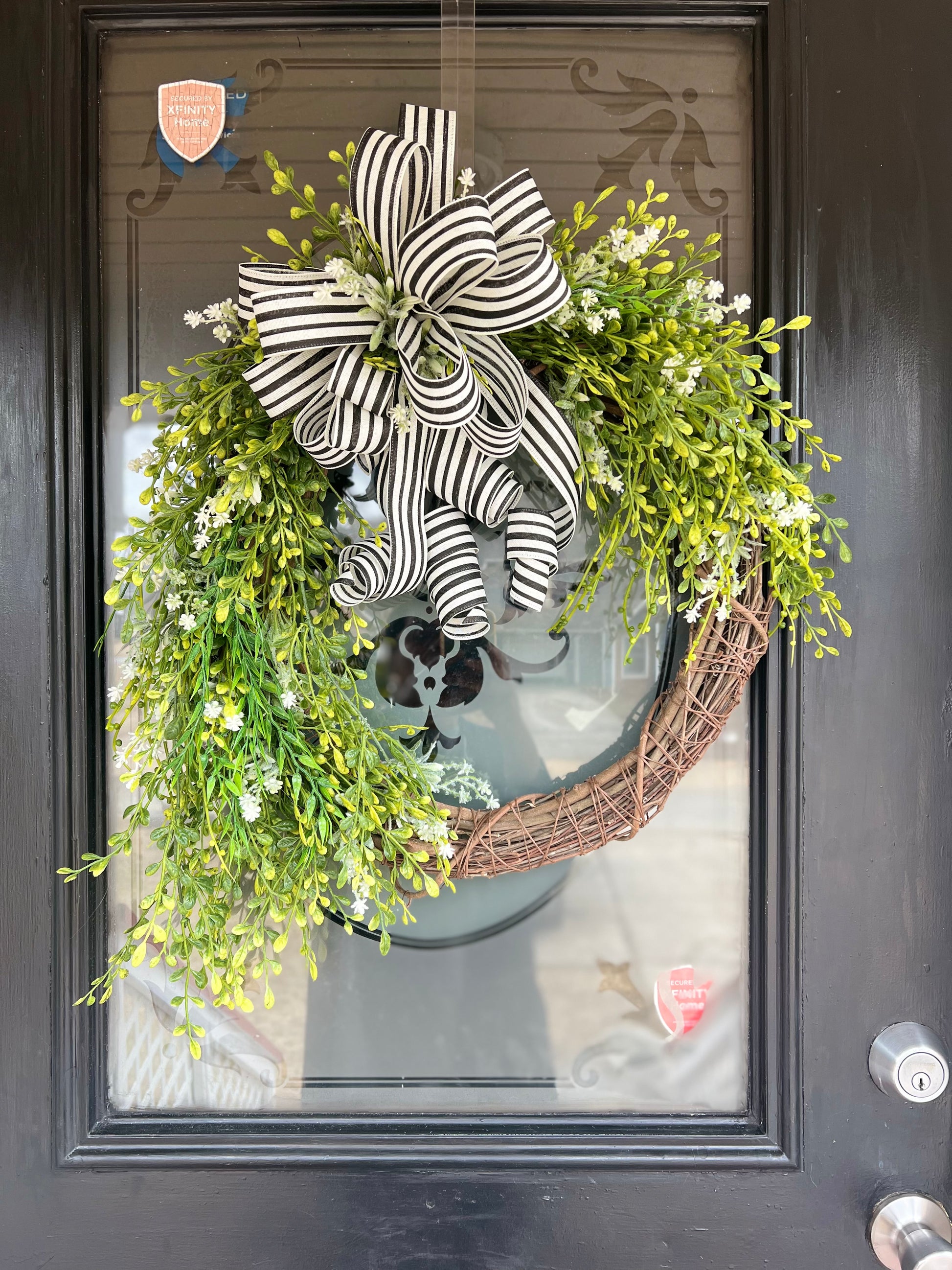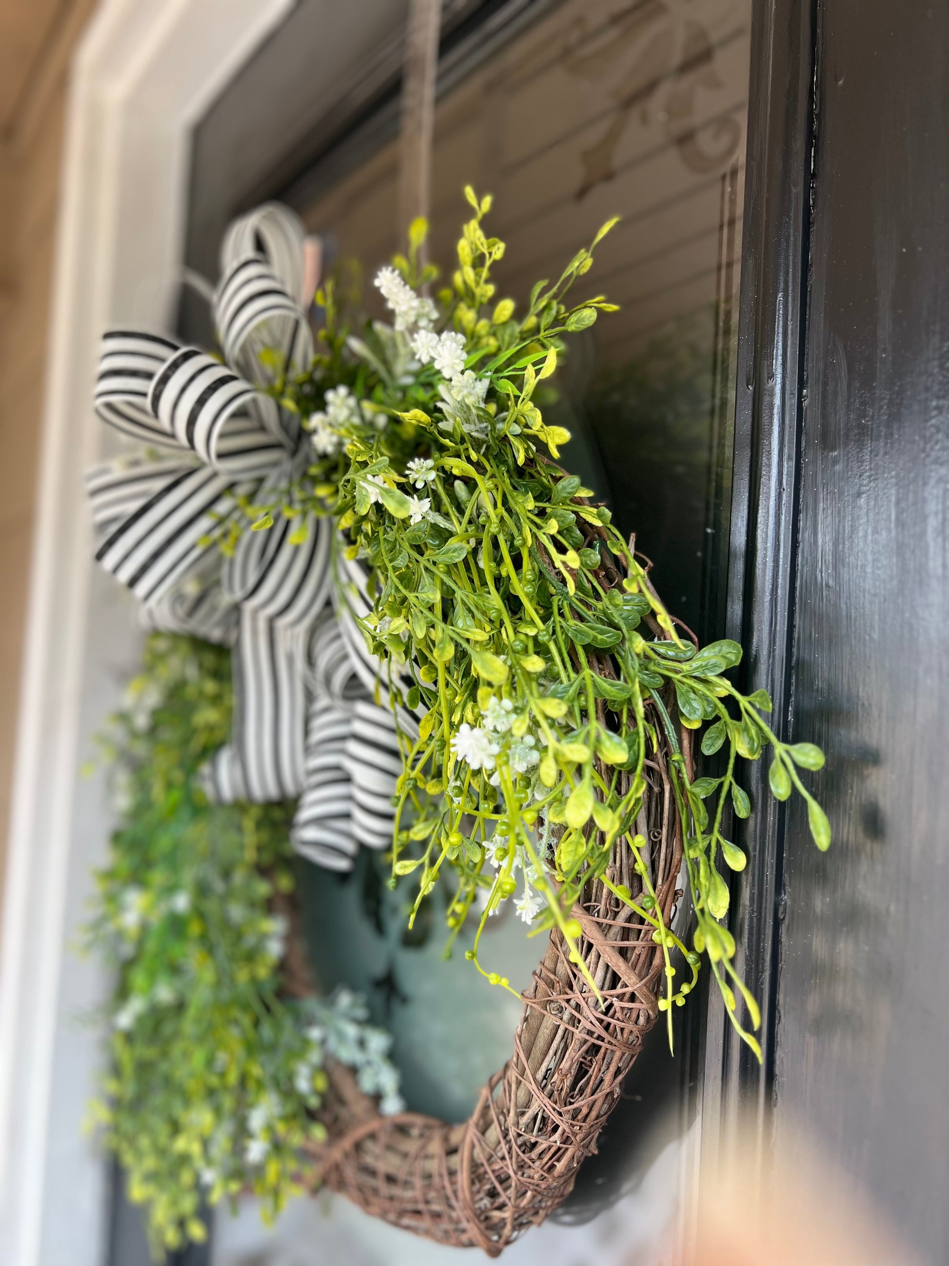 Introducing Greenery Love - the perfect way to elevate your door decor! This stunning wreath boasts a basic greenery design and a large bow that adds a touch of elegance.