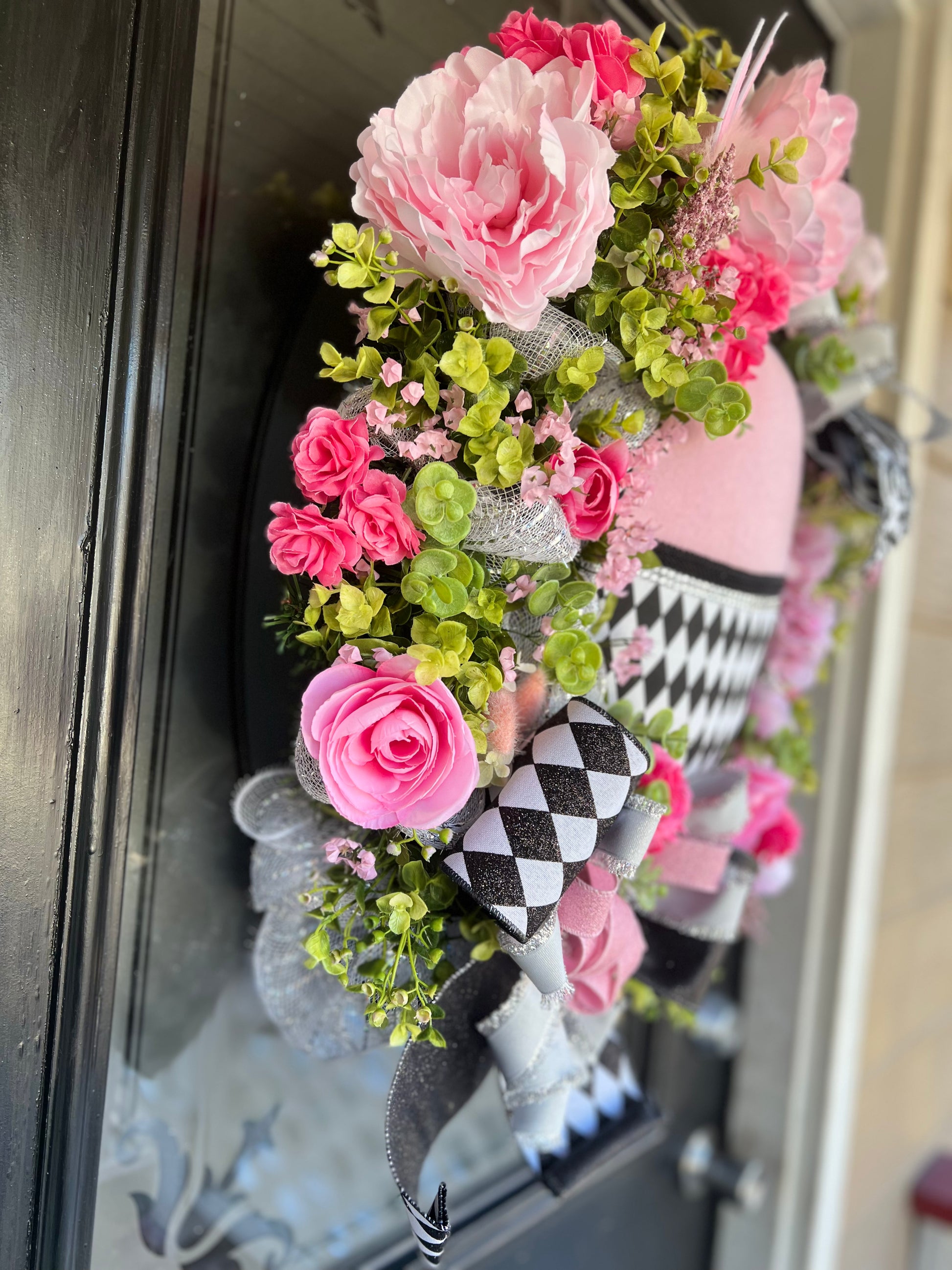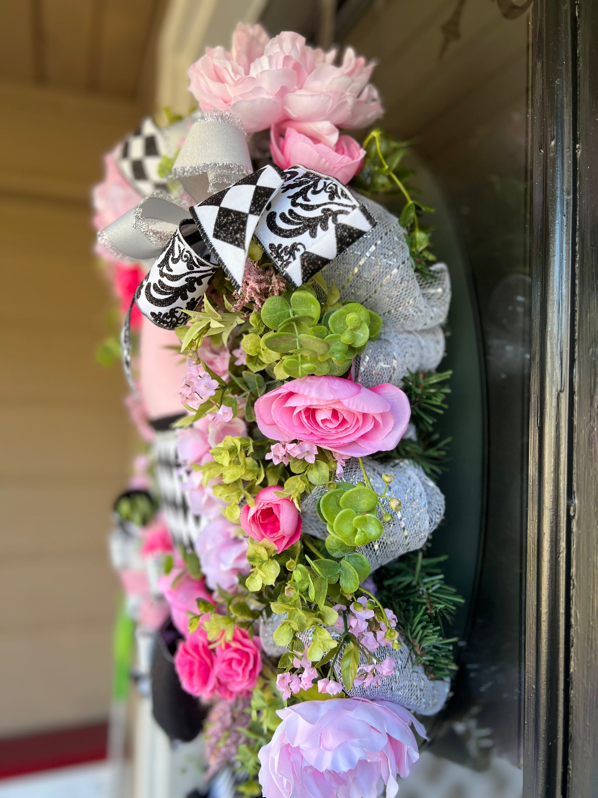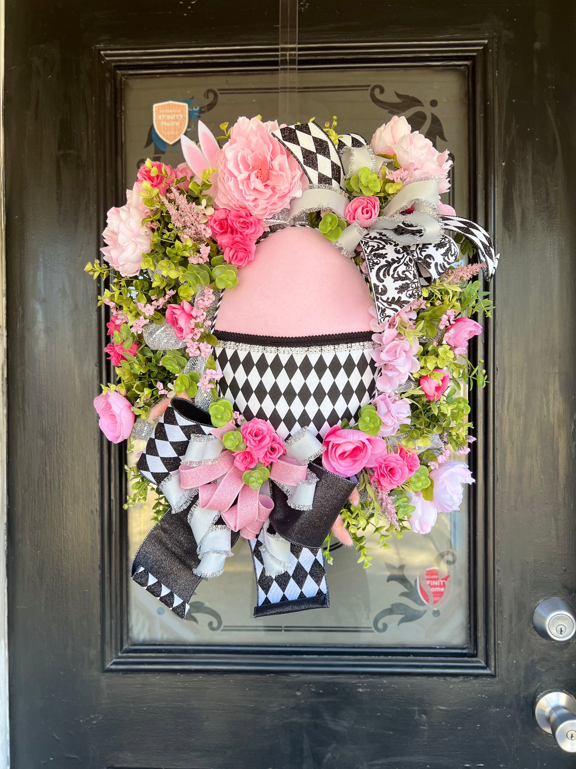 The Pink Diamond wreath, expertly designed for Easter, is a stunning addition to your spring decor. Adorned with vibrant floral arrangements, lush greenery, and an oversized bow, its intricate details and pastel hues provide a touch of elegance to any space.