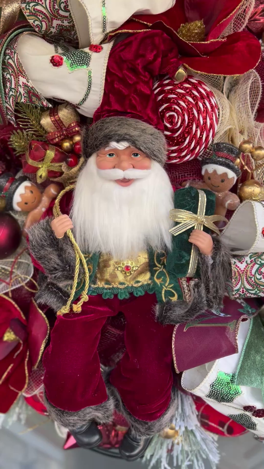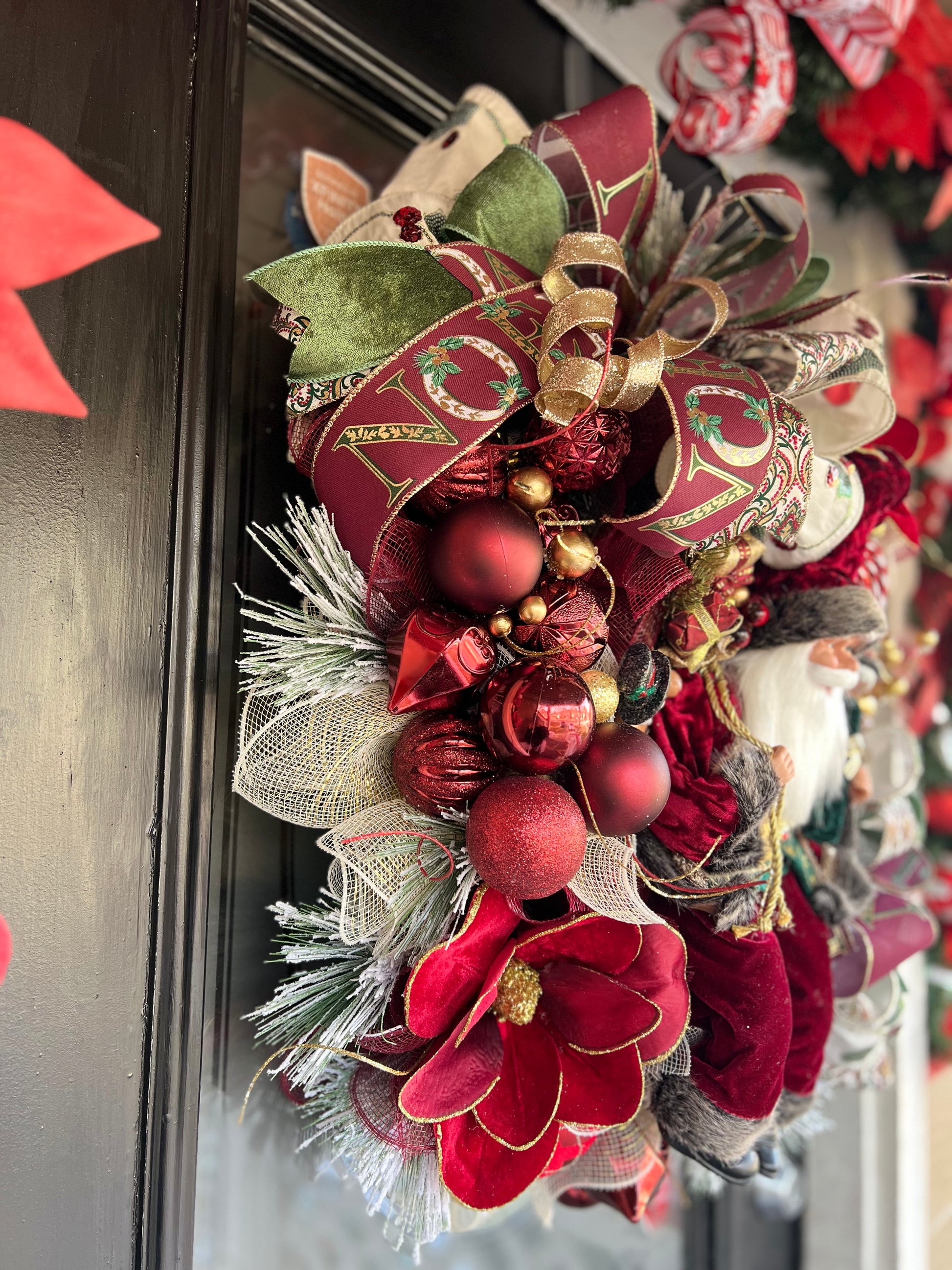 Introducing Santa, a gorgeous wreath adorned with elegant bows, stunning ornaments, and a touch of greenery. Perfect for adding a festive touch to your home during the holiday season. Enjoy the beauty of this wreath and spread holiday cheer.